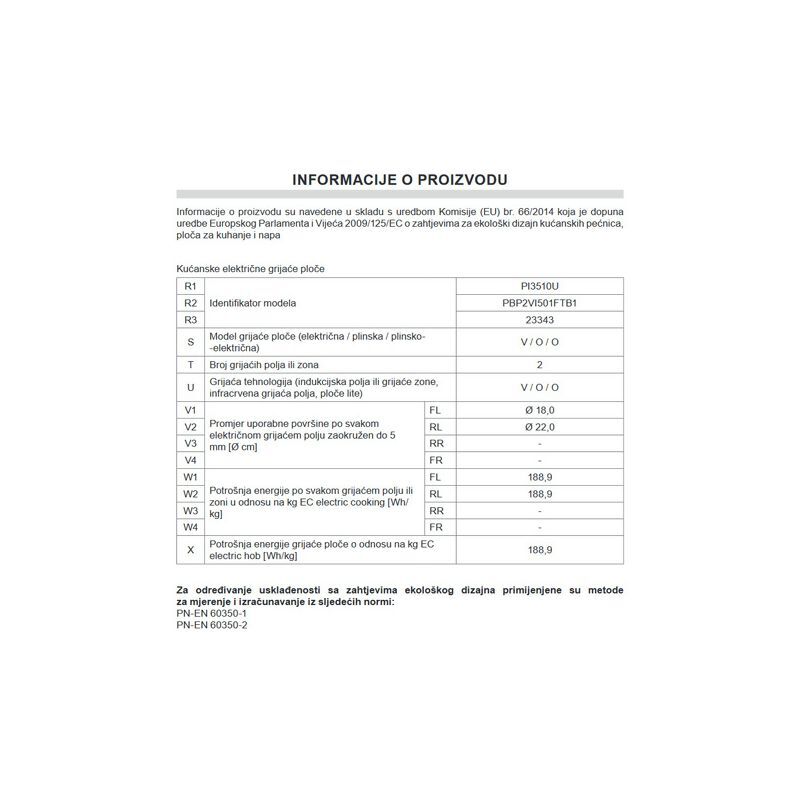 Zone za kuhanje: Zona sa boosterom 18,0 cm; zona sa boosterom 22,0 cm