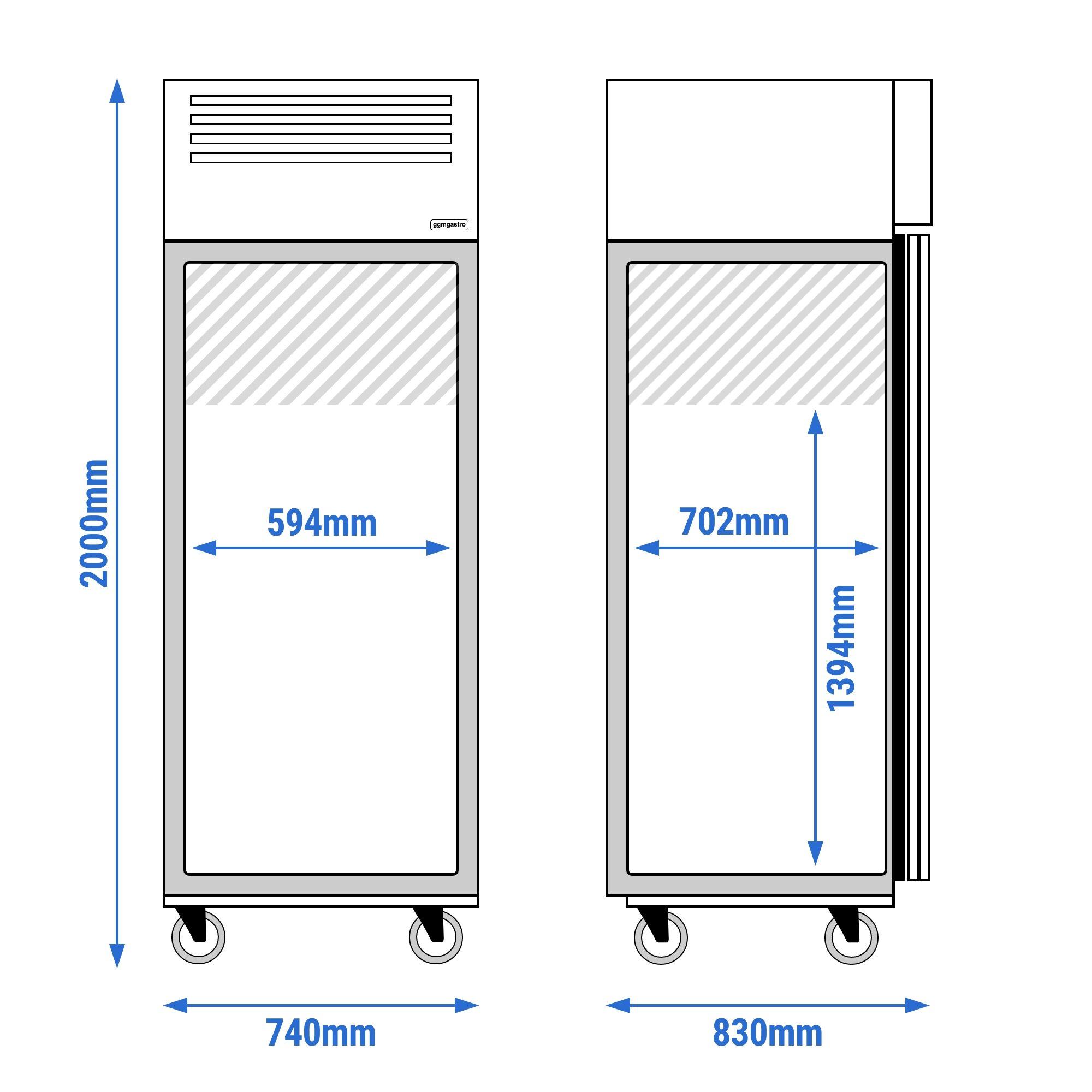 Unutarnje dimenzije Š x D x V: 594 mm x 702 mm x 1.394 mm