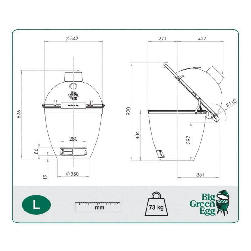 Kamado roštilj Big Green Egg L size najpopularniji je model Big Green Egg obitelji. Površina za kuhanje, koja se može proširiti, olakšava pripremu jela omiljenih Vama i Vašim najbližima. Budući da je Large model dovoljno velik za pripremu jela za osam osoba, možete istovremeno pripremati hranu za sve! Njegova velika površina omogućava pripremu tri slijeda jela bez ikakvih problema. Ako želite izvući najviše iz svog EGG-a, Large je savršen izbor za Vas. Ipak je to model s najviše dodataka. Ime Large mu je nadjenuto upravo zbog njegovih opsežnih mogućnosti.