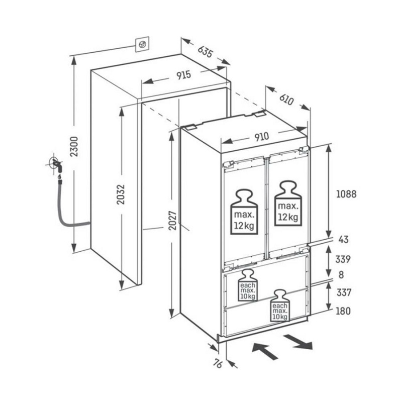 Dimenzije niše visina/širina/dubina:203,2 – 207,2 / 91,5 / 63,5 cm