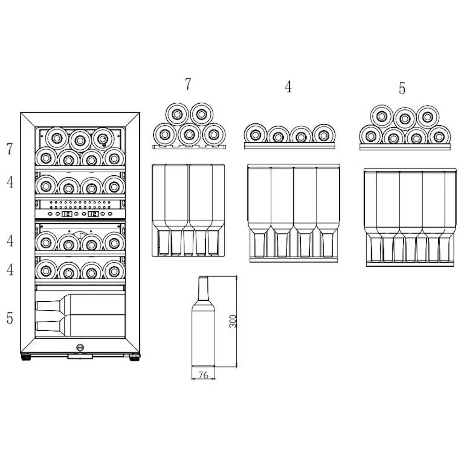 Hladnjaci su crne boje, staklenih vrata s UV zaštitom, drvenih polica, okvir može biti ili srebrni ili crni.