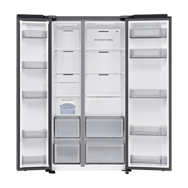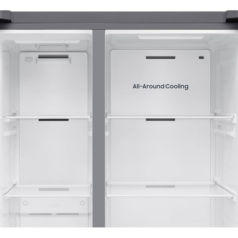 Ovaj hladnjak opremljen je naprednim značajkama koje osiguravaju dugotrajnu svježinu namirnica i visoku energetsku učinkovitost. Zahvaljujući Twin Cooling Plus™ tehnologiji, temperatura i vlažnost u hladnjaku i zamrzivaču optimalno se prilagođavaju pomoću neovisnih isparivača i ventilatora. Time hrana ostaje dulje svježa, a mirisi se ne miješaju između odjeljaka. SpaceMax™ tehnologija dodatno omogućuje tanje unutarnje zidove, čime se postiže veći korisni prostor bez povećanja vanjskih dimenzija uređaja. Sveobuhvatno hlađenje ravnomjerno raspoređuje hladan zrak po cijelom unutarnjem prostoru, dok metalna ploča na stražnjoj stijenci pomaže u zadržavanju hladnoće i bržem vraćanju optimalne temperature nakon otvaranja vrata.