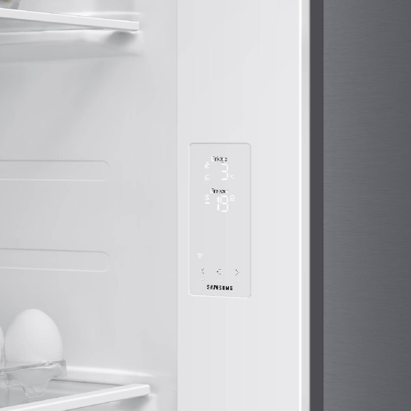 Ugrađeni Wi-Fi omogućava upravljanje i nadzor hladnjaka bilo kada i bilo gdje putem SmartThings aplikacije. Možete provjeriti temperaturu, prilagoditi način rada, dobivati obavijesti o otvorenim vratima ili provjeriti status filtera. SmartThings Energy aplikacija pomaže u praćenju potrošnje energije i pruža korisne savjete kako biste postigli još veću učinkovitost. SmartThings Home Care značajka olakšava održavanje hladnjaka jer šalje upozorenja i prijedloge za preventivne radnje, dok SmartThings Food funkcija omogućuje upravljanje zalihama i preporučuje recepte prema onome što imate u hladnjaku.
