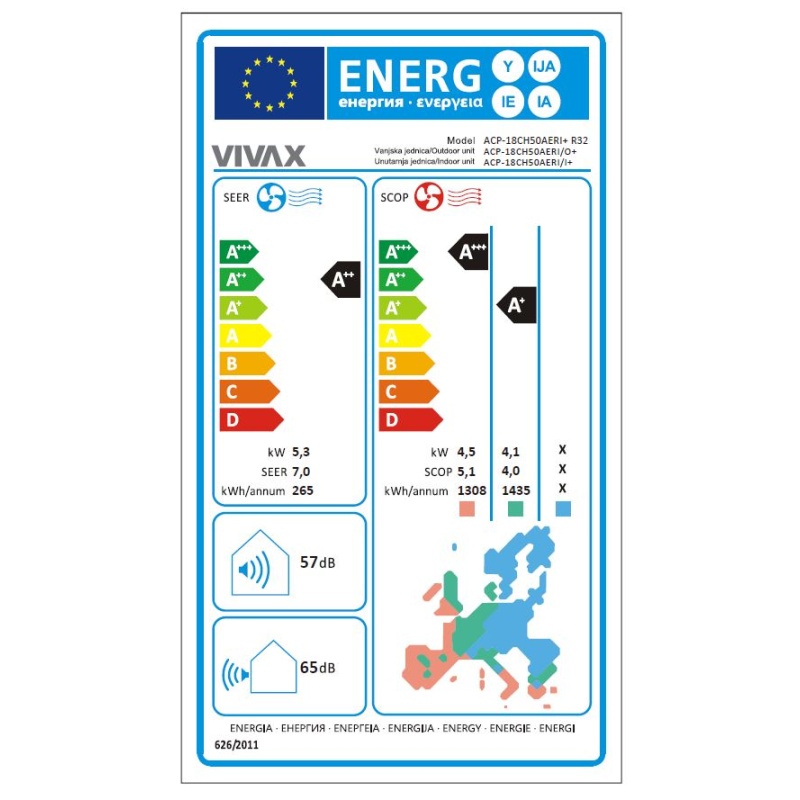 • KAPACITET HLAĐENJA/GRIJANJA: 5,28 kW / 5,57 kW