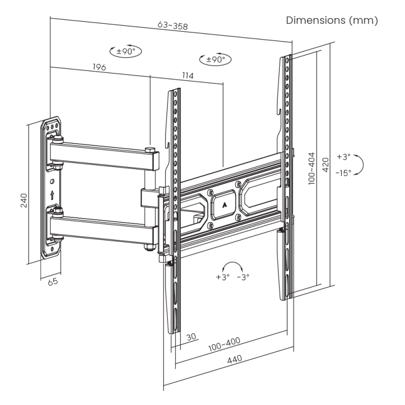 Vertikalni nagib – +3°/ -15°